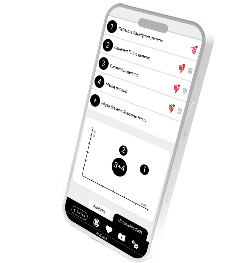 VINONIA ist die erste Wein-App, die es Weinliebhabern ermöglicht, sich mit Wein anhand von Rebsorten und Aromen zu beschäftigen. Dank einer Verknüpfung von mehr als 140 Aromen und mehr als 550 Rebsorten erhält die Verkostung eine neue Bedeutung. Die App hilft Ihnen, die Besonderheiten der verschiedenen Rebsorten zu verstehen und sie anhand ihres aromatischen Ausdrucks, aber auch anhand ihrer technischen Eigenschaften wie Säure, Körper, Tannin zu erkennen – und somit den Wein zu verstehen.